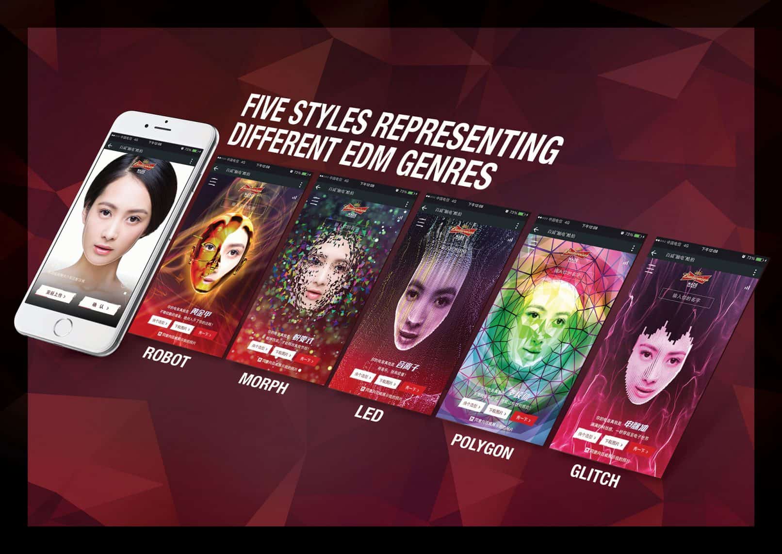 Using a mix of creativity, design and tech, we created our own code-based system in WebGL to achieve the ambitious effects we envisioned. All the user needs to do is upload a selfie, match it to an ‘EDM skin’ and watch it come to life in a series of awesome animations that morph to the beat.